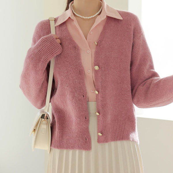 ソフト アンゴラ ゴールド ボタン カーディガン