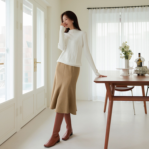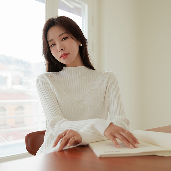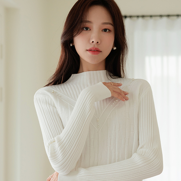 エレガンス 真珠 ポイント セミハイネック ニット