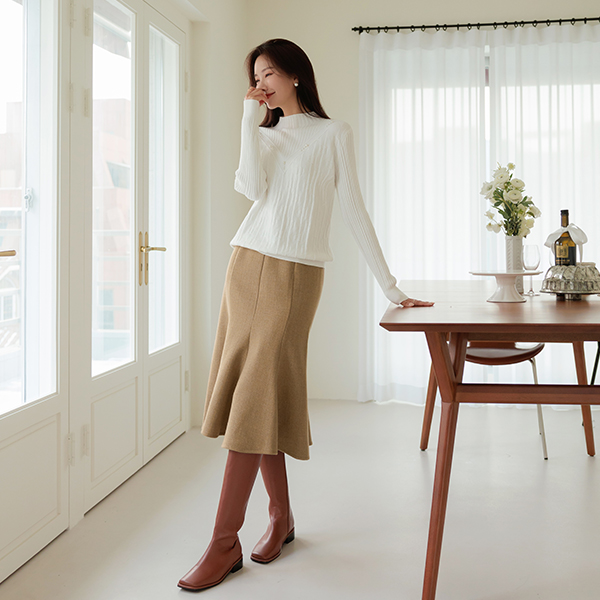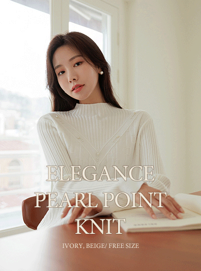 エレガンス 真珠 ポイント セミハイネック ニット