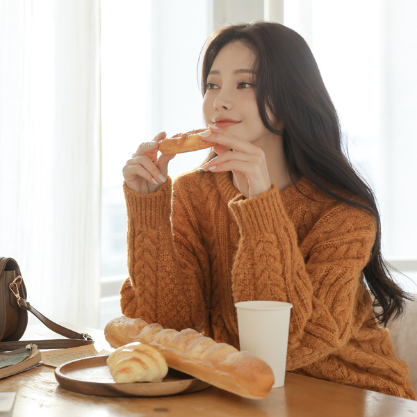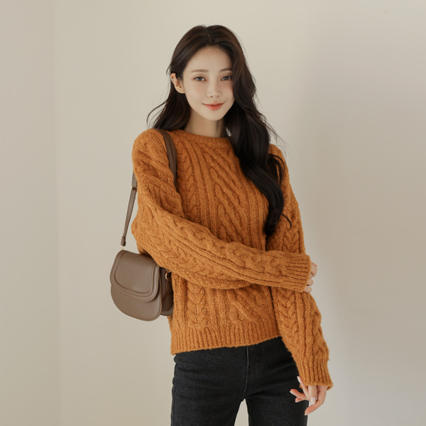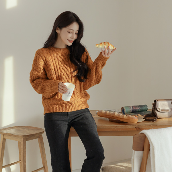 分厚い ラウンドネック ケーブル ニット