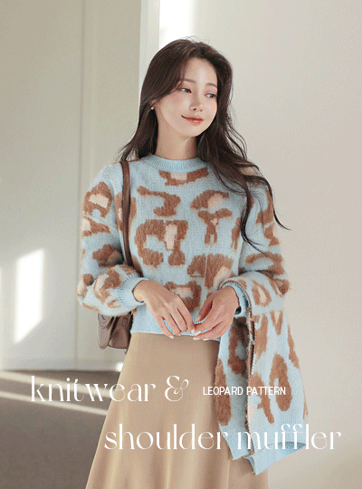 ぽかぽかした 虎皮 パタン ラウンド ニット & ショルダー マフラー
