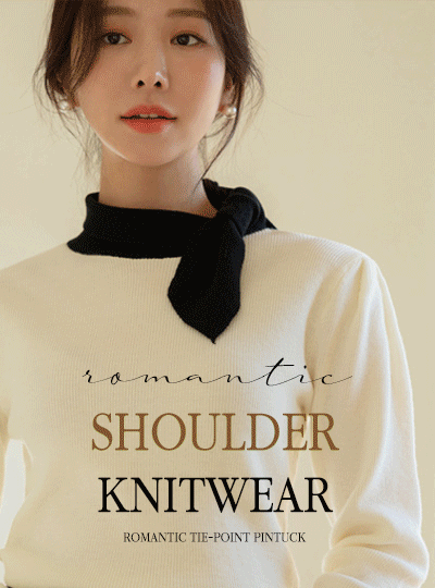 ロマンチック タイ ポイント ピンタック ショルダー ニット