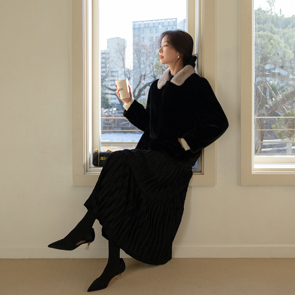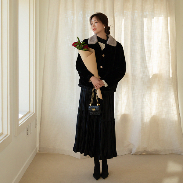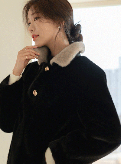 Julia カラーネック やわらかい Eco ファー ジャケット