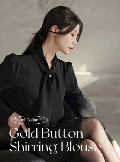 ショールカラー タイ ゴールドボタン シャーリング ブラウス Ⅲ