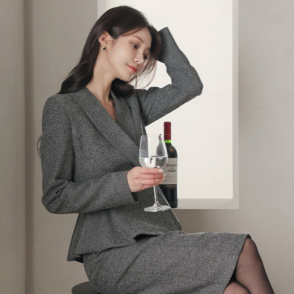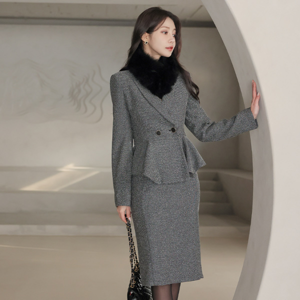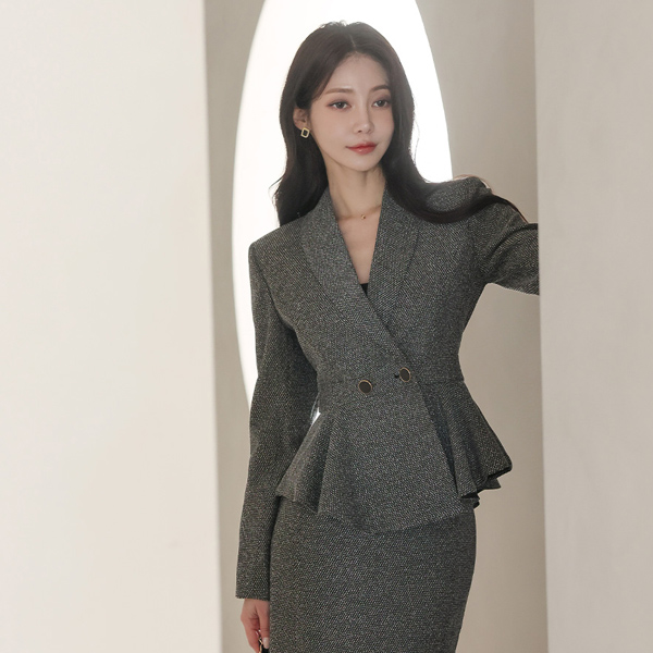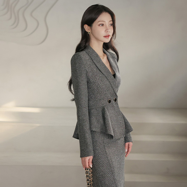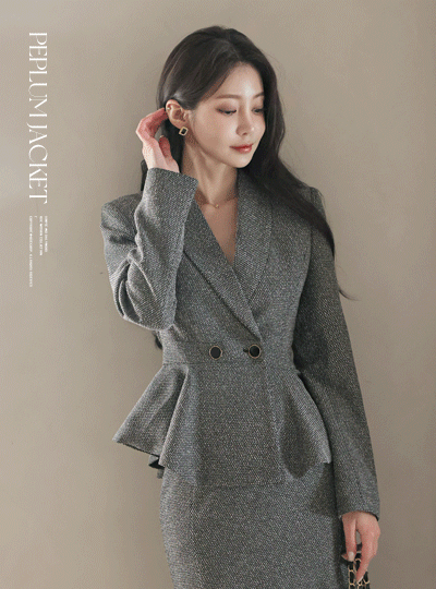 公式 原糸ミックス ショールカラー ダブルボタン ペプラム ジャケット