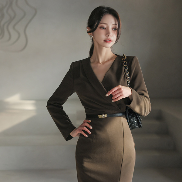 アンバランス カラー サイド Pinch シャーリング 弾力 ワンピース