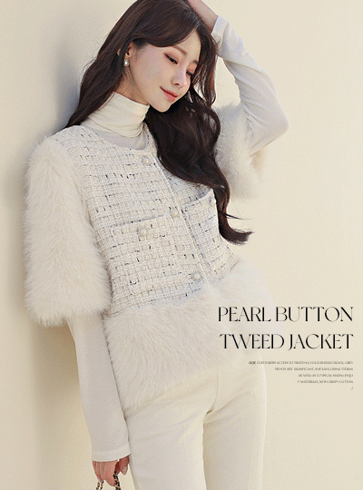 エコファー 配色 真珠 ボタン ツイード ジャケット