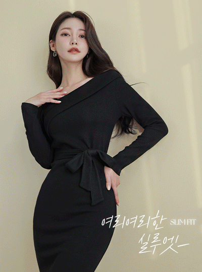 折り畳み式 アンバランスネック スリム コール天 ロング ワンピース