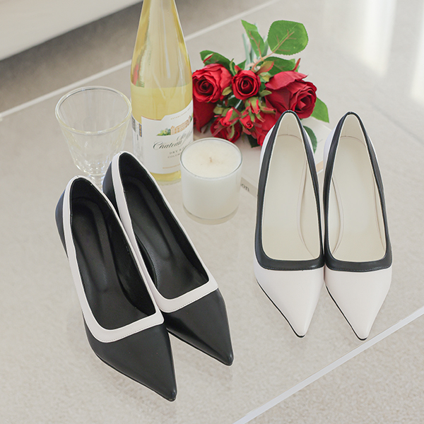 ブラックアンドホワイト 配色 スティレット ヒール