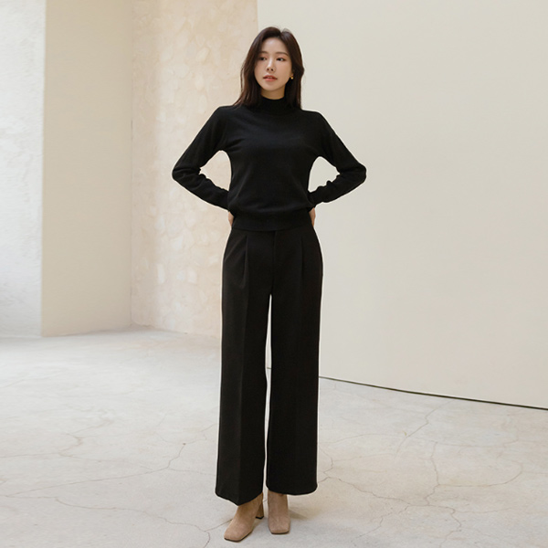 楽な ソフト カラー デーリー ハーフネック アルパカ&ウール ニット