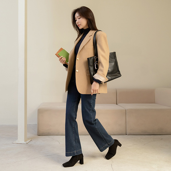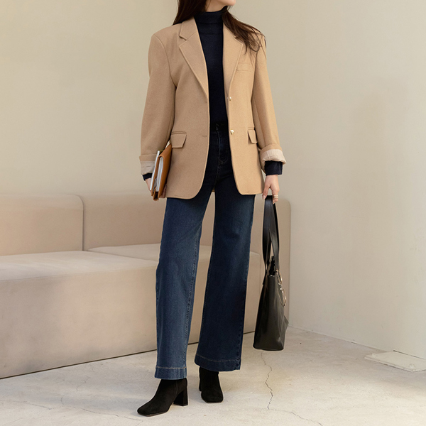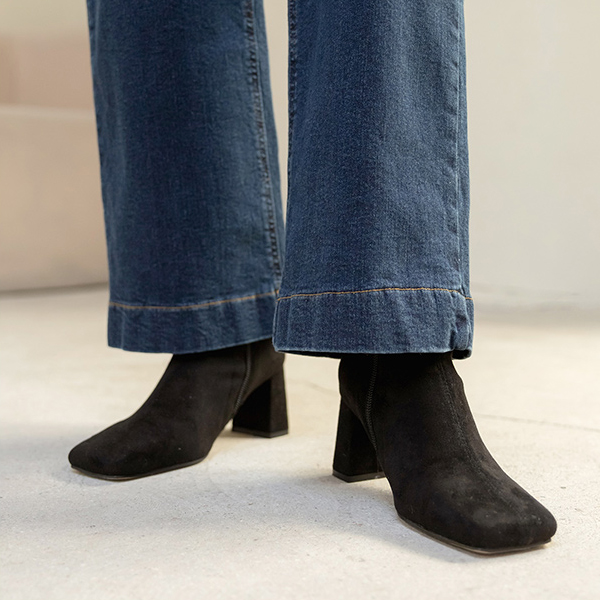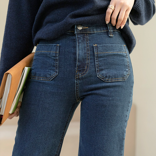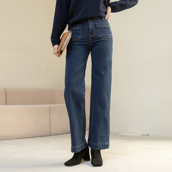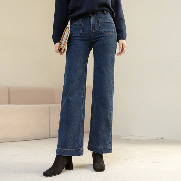 レトロ ダブル ポケット ワイド 弾力 デニム パンツ