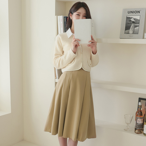 ゴールド 配色 裏地 ブークレ カーディガン