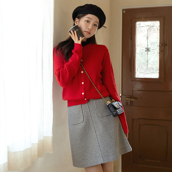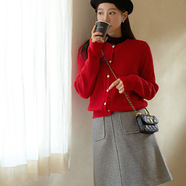 미미 ケーブル カシミア&ウール ニット カーディガン