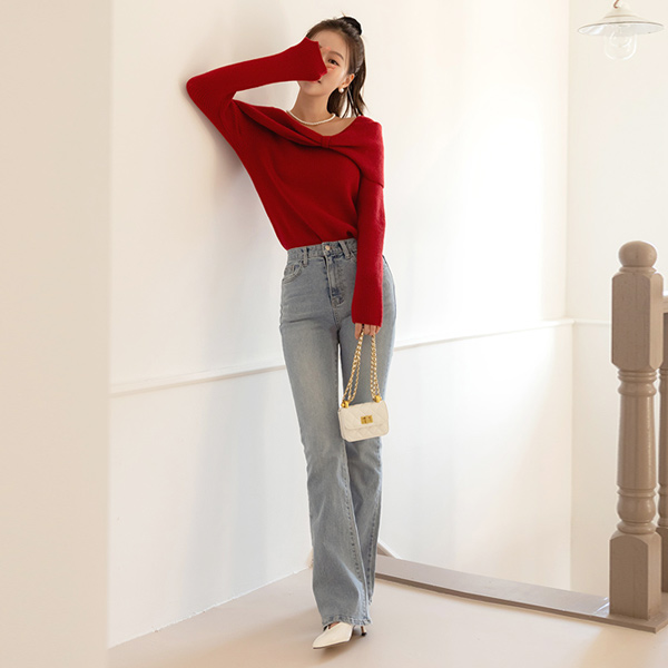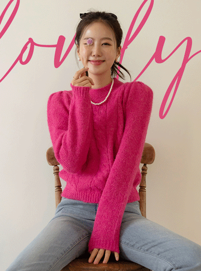 カラー ポイント ロマンチック パフ袖 ウール ニット