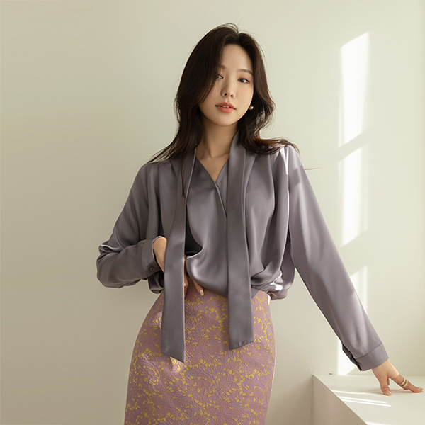 きらっと タイ ブイネック ドレープ ブラウス