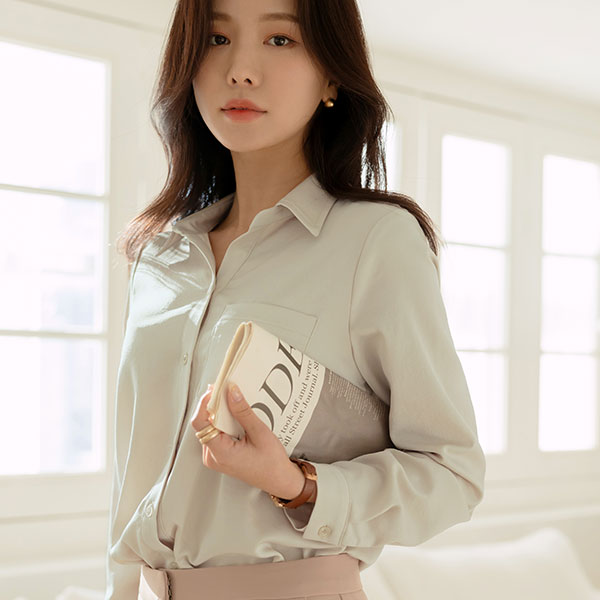 ツーウエー アンバランス 裾上 グロッシー ブラウス