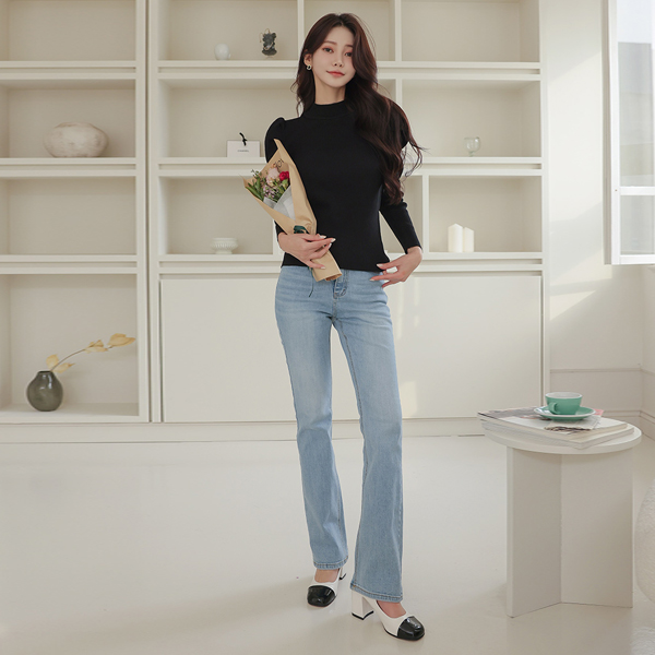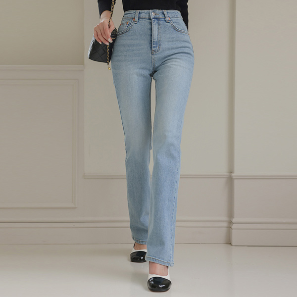 White ウォッシング フォーマル ブーツカット 弾力 デニム パンツ