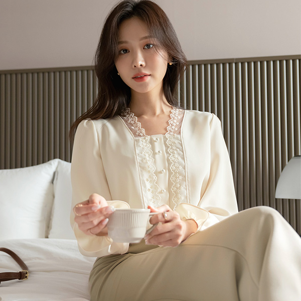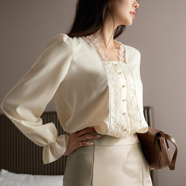 ほっそりした ムード レイス 配色 バンディング 袖 ブラウス