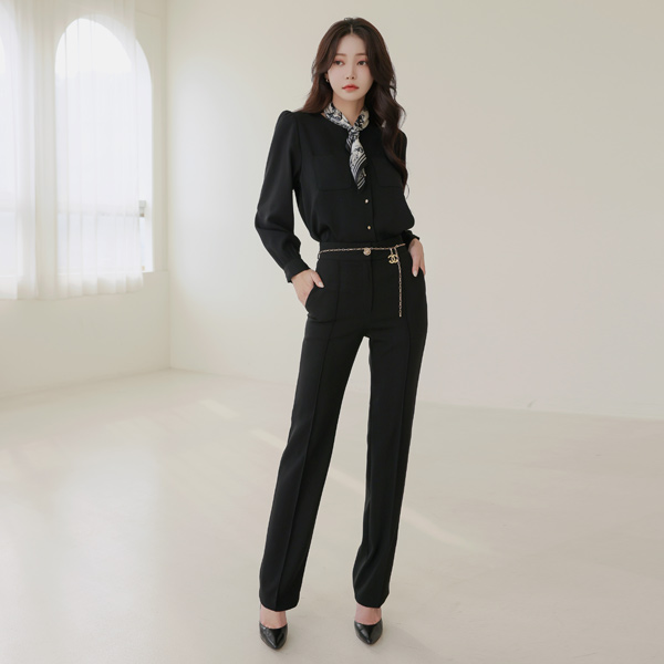 ゴールド ボタン ダブル ポケット ブラウス