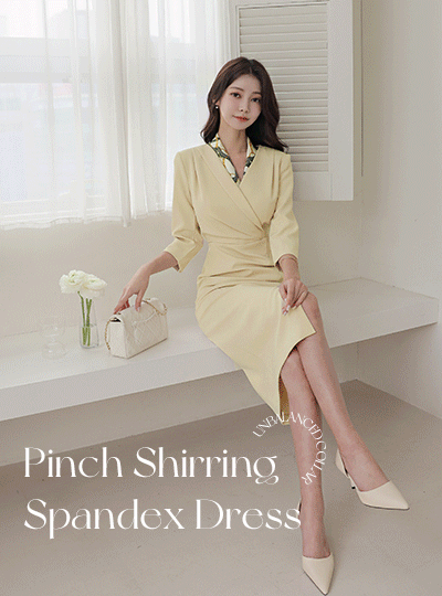 アンバランス カラー サイド Pinch シャーリング 弾力 ワンピース(クロップド)