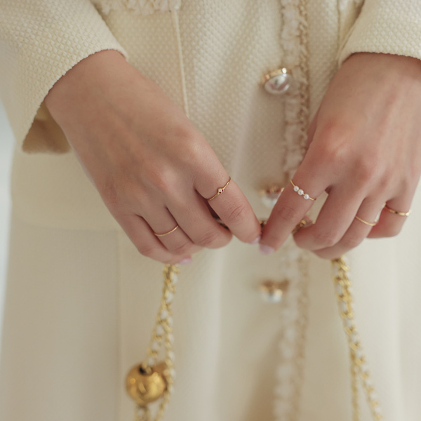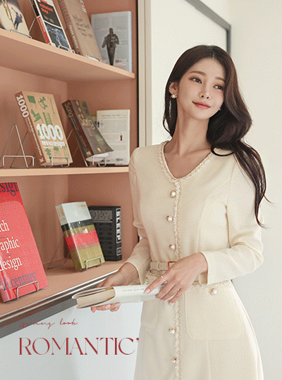 ブイネック 真珠 ボタン ツイード Aライン ワンピース