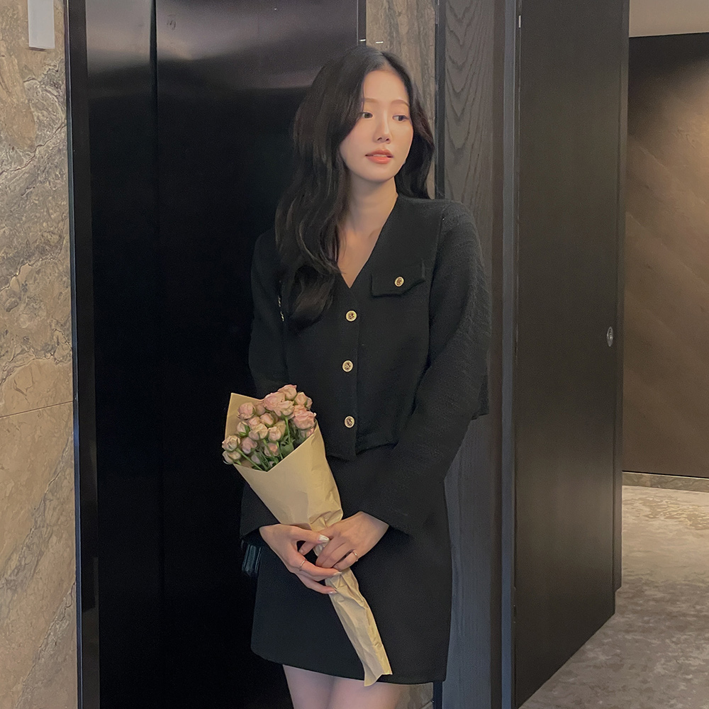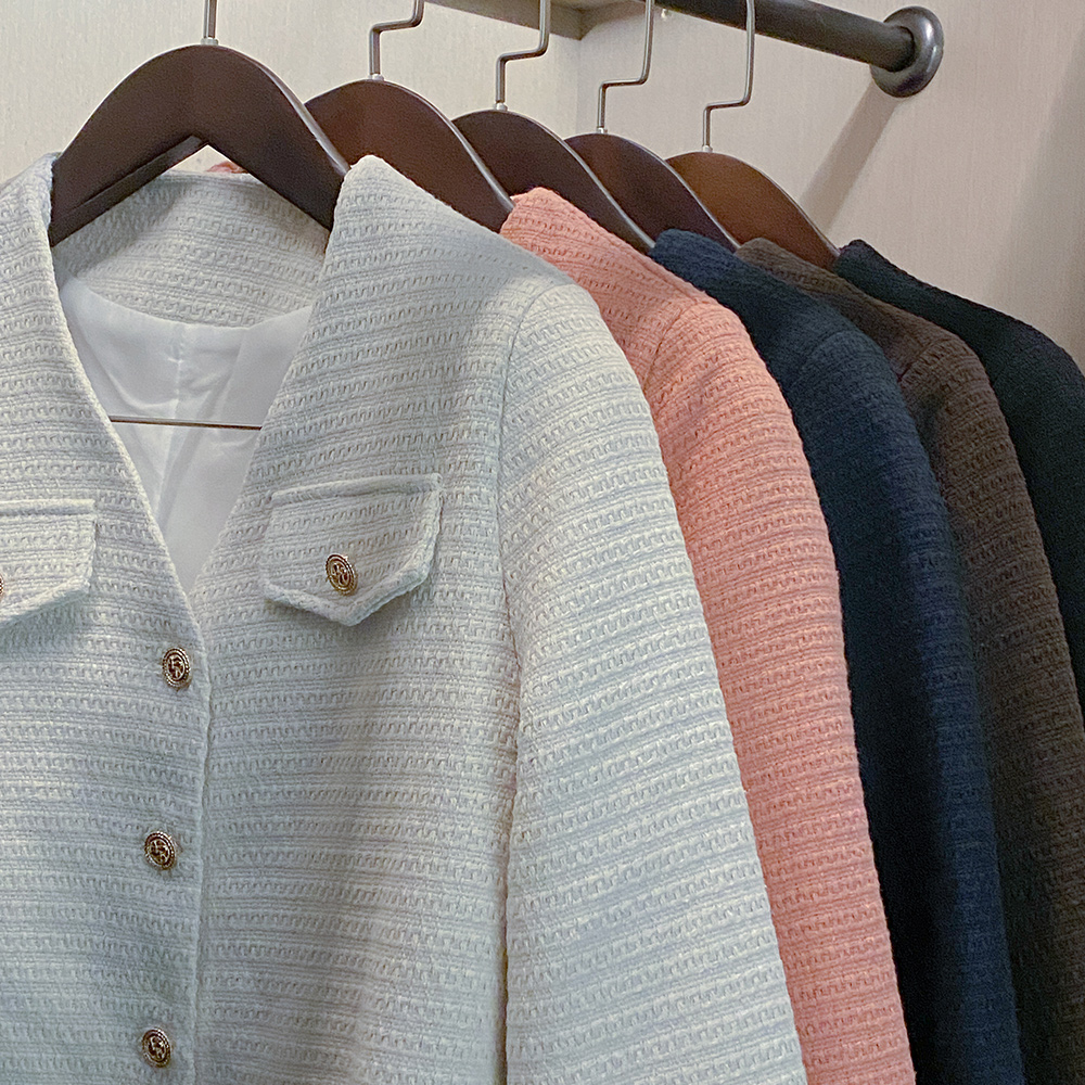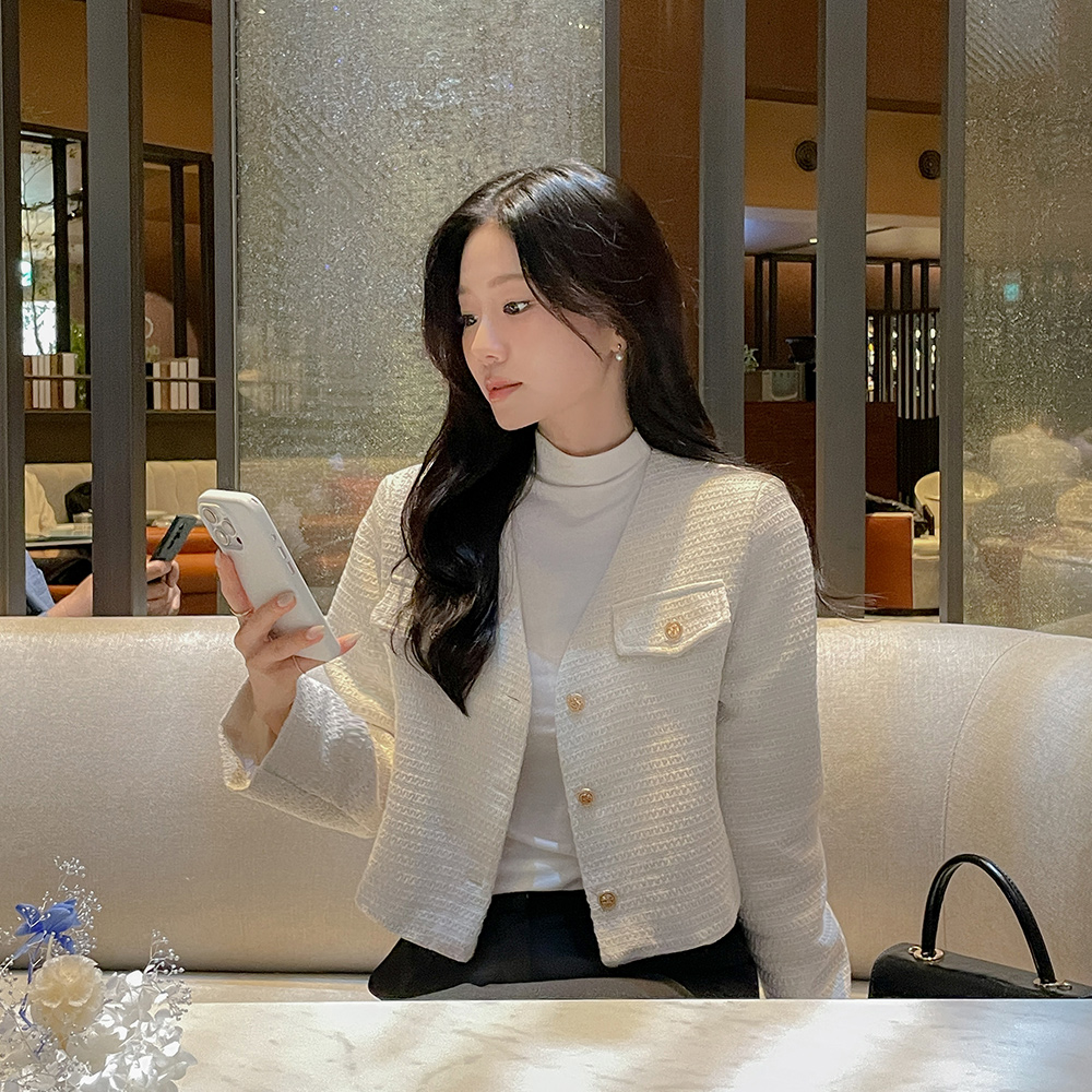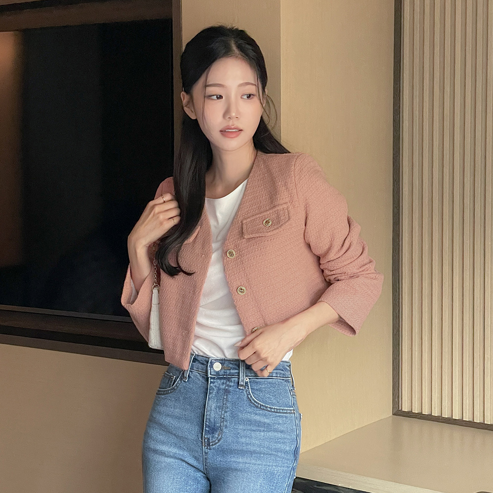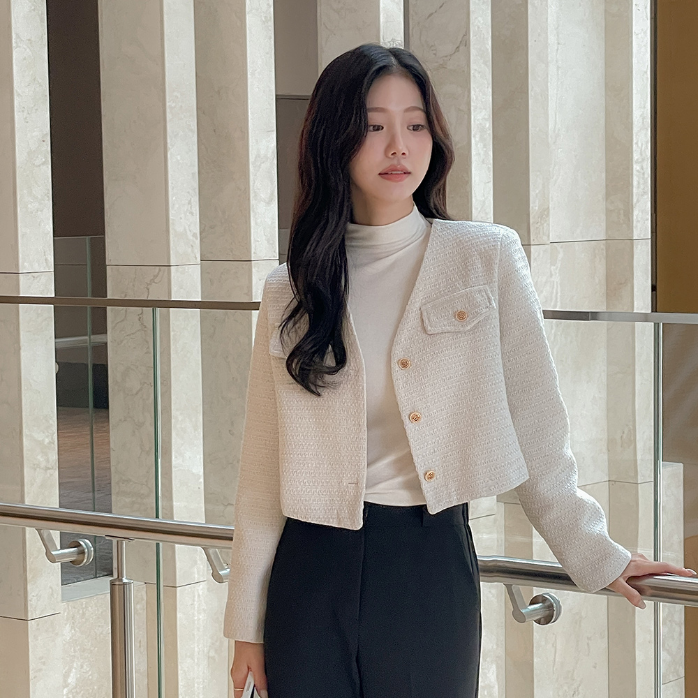 カラー ブイネック クロップド ツイード ジャケット