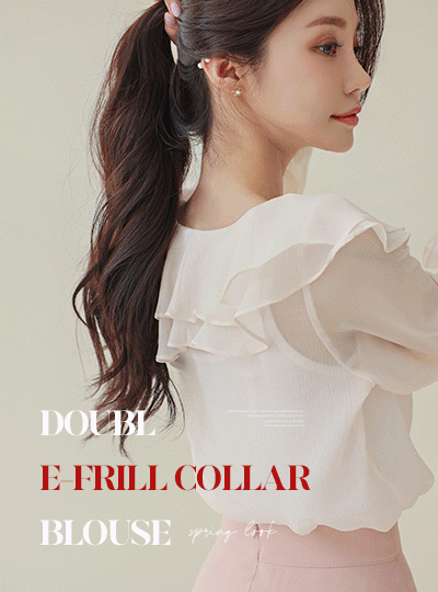 二重 フリル カラー バンディング 袖 シースルー ブラウス