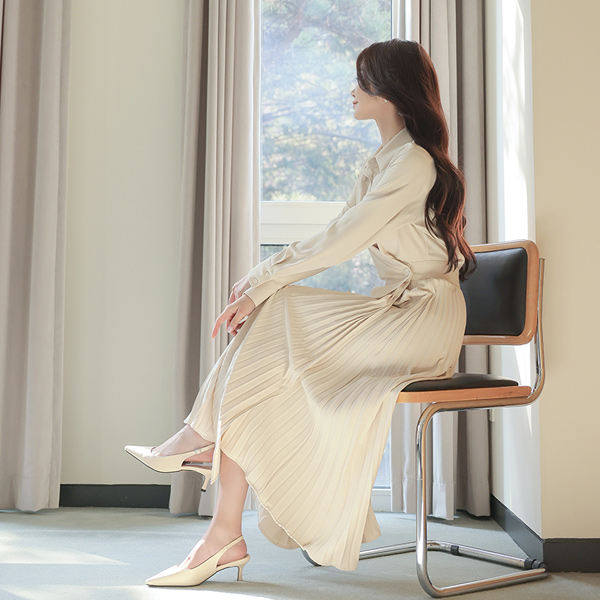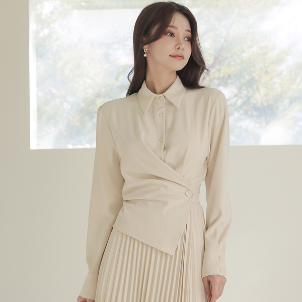 シャツ アンバランス シャーリング ラップ プリーツ ロング ワンピース