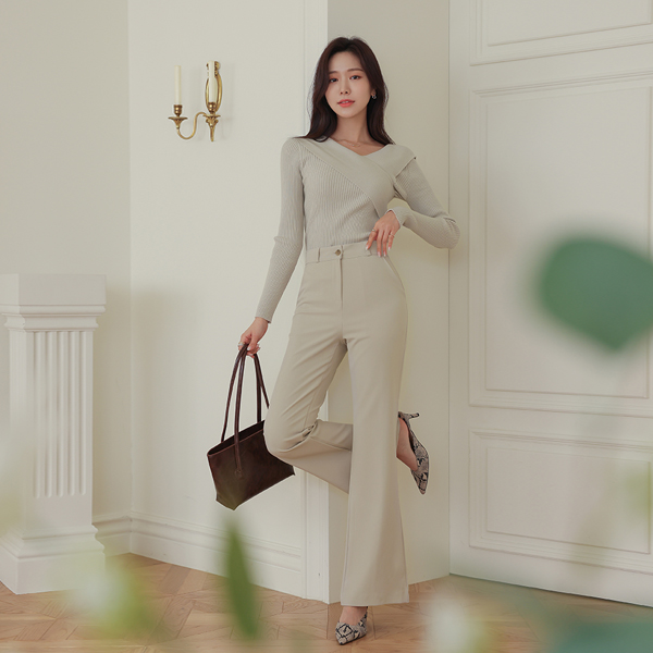 女性らしい ワイド ネック ポイント ニット