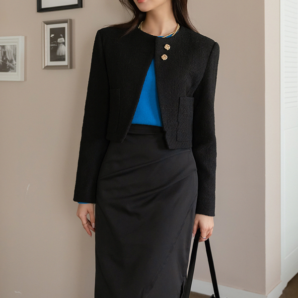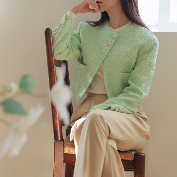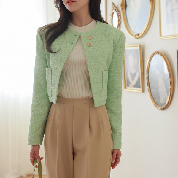 ODE 斜線 ポイント 春季 ツイード クロップド ジャケット