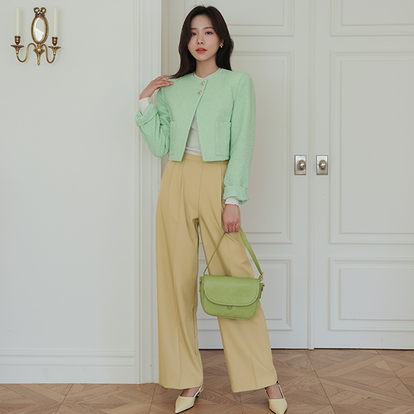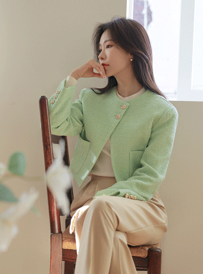 ODE 斜線 ポイント 春季 ツイード クロップド ジャケット