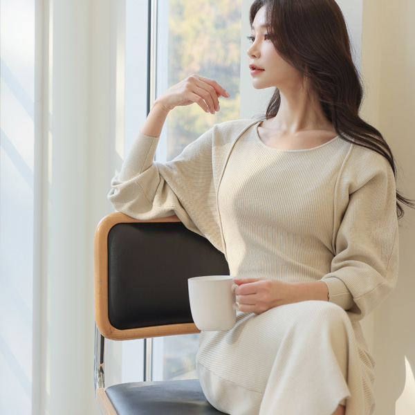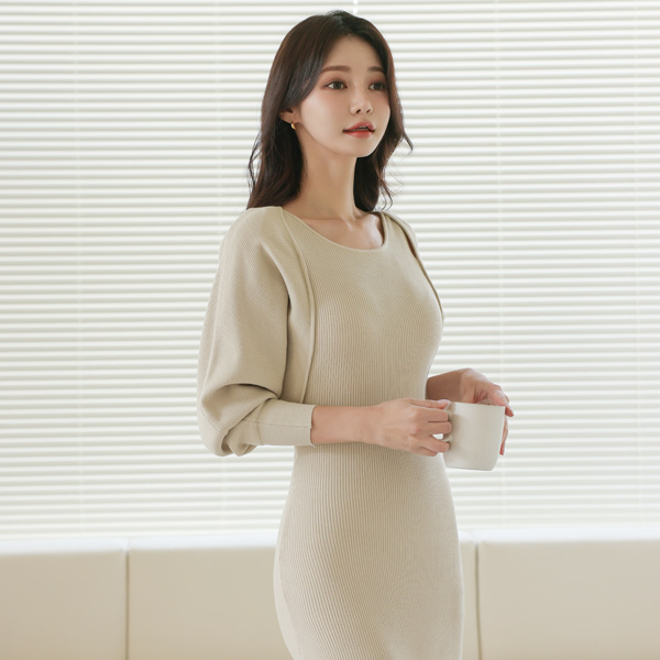 ボレロ スリム コール天 ニット ロング ワンピース