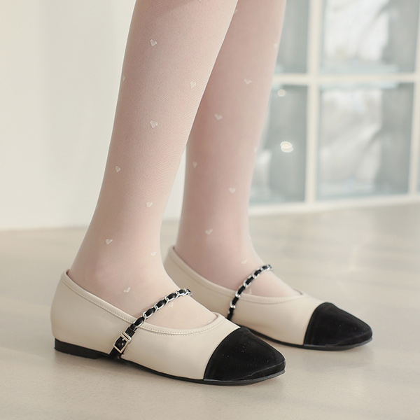 配色 チェーン ストラップ メリージェーン フラット シューズ