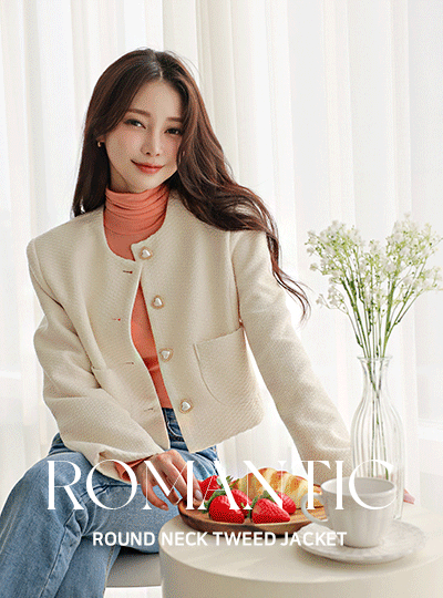 真珠 ハート ボタン ノーカラー ショット ジャケット