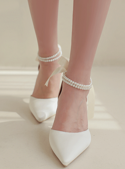 シルク ダブル 真珠 ストラップ リボン スティレット ヒール