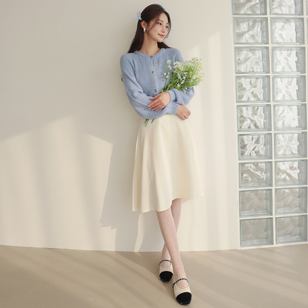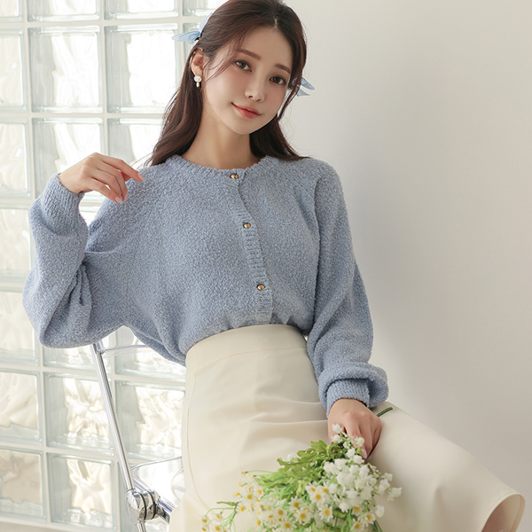 ウール アルパカ ブークレ ゴールド カーディガン