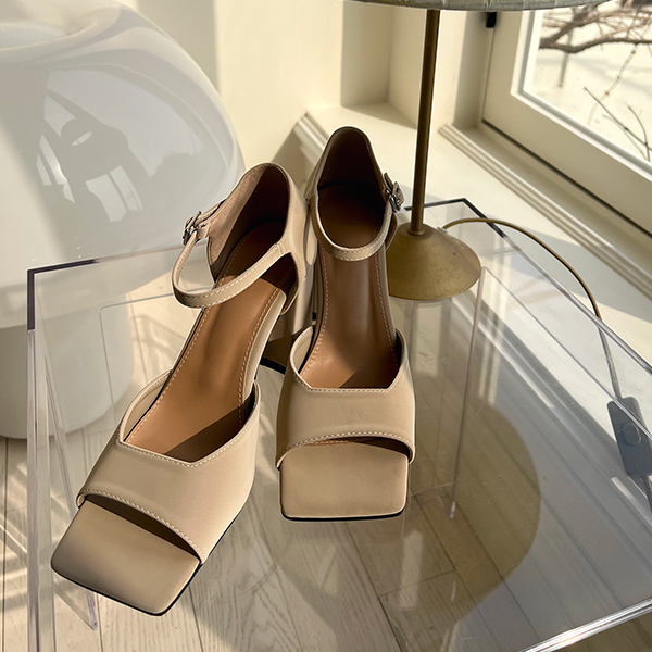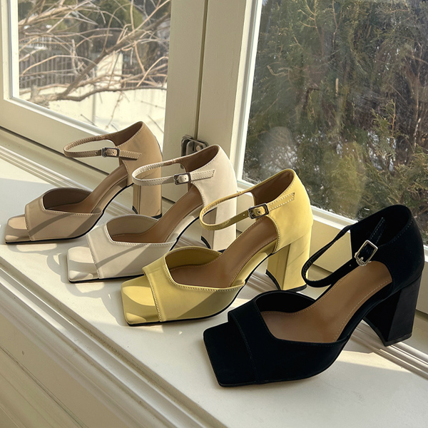スクエアトー ボールド 蹄 ストラップ ヒール