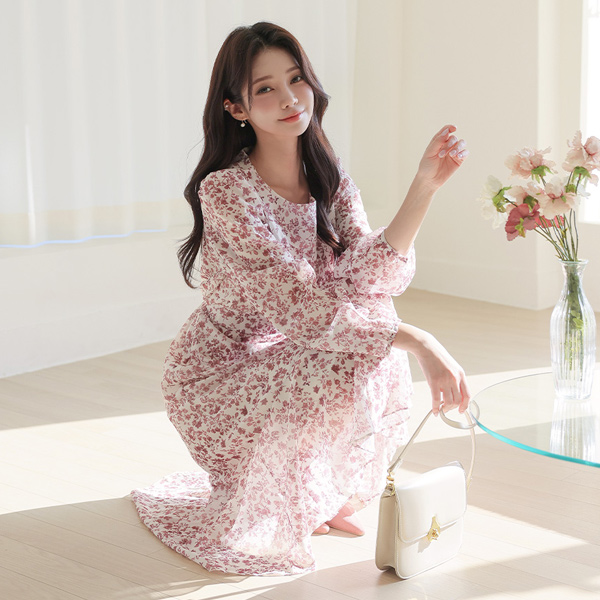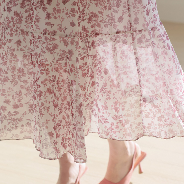 ロマンチック ロング シフォン ワンピース