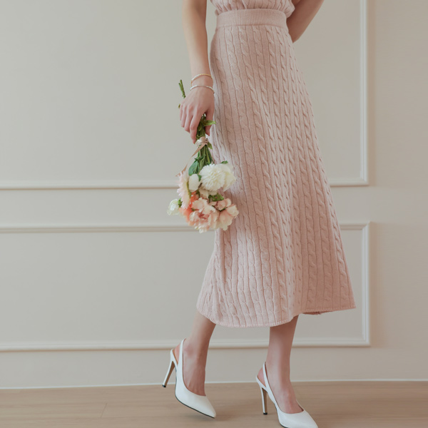 ハイネック ケーブル キャップップ ニット& Aライン スカート SET