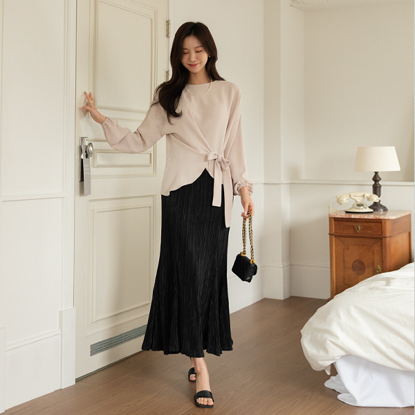 ODE ソフト リボン ラップ ポイント 長袖 ブラウス