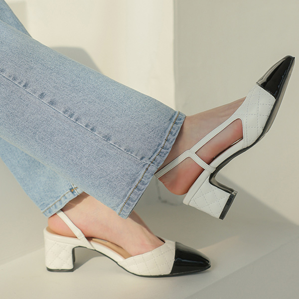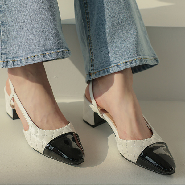 クラシック ツートーン キルティング スリングバック ヒール