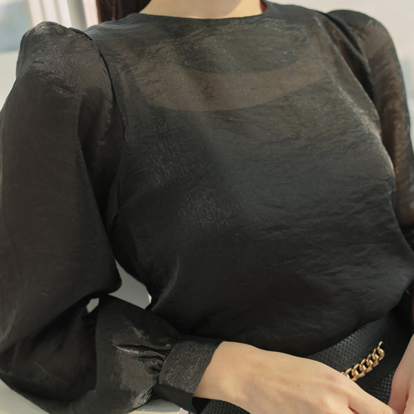 トゥインクル サテン リンクル パフ袖 ブラウス