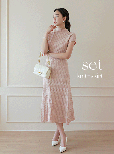 ハイネック ケーブル キャップップ ニット& Aライン スカート SET