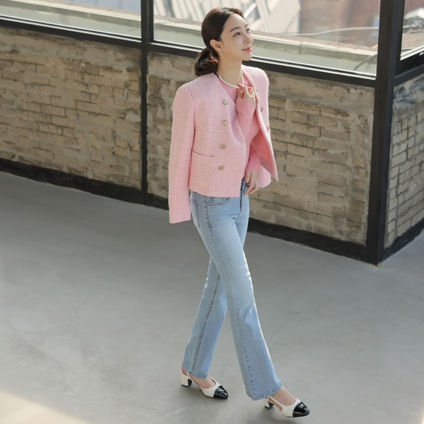 Powdery スパングル ダブル ボタン ジャケット