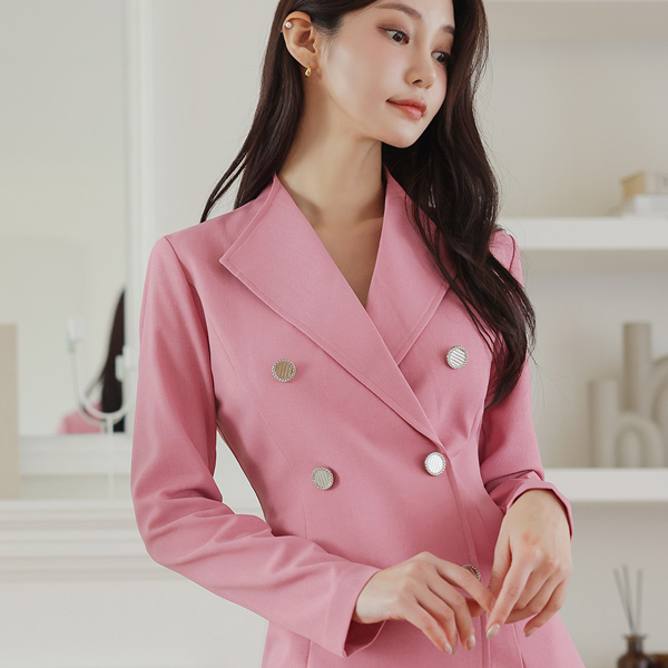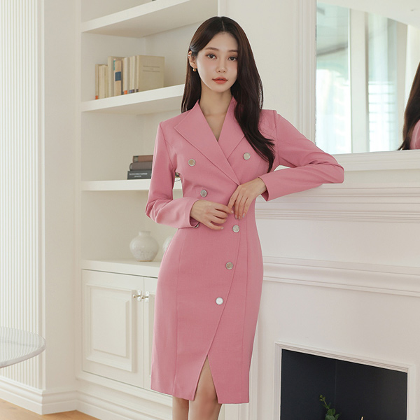 ウイングカラー アンバランス メタルボタン スリット 弾力 ワンピース(spring)Ⅱ