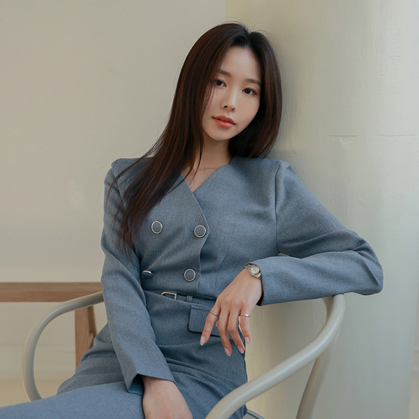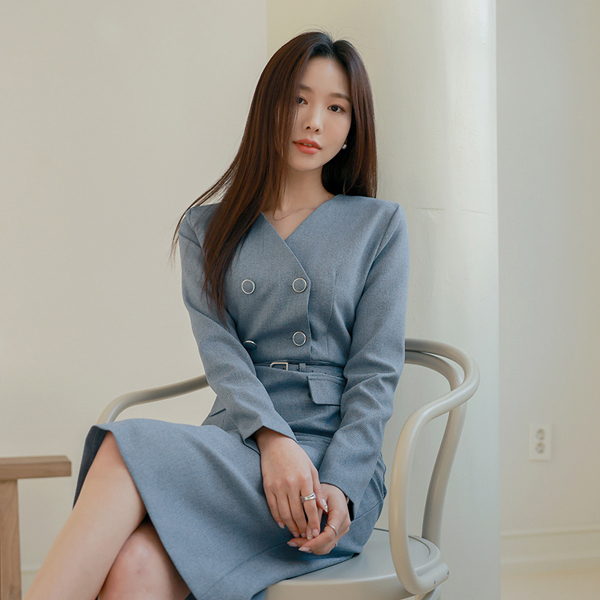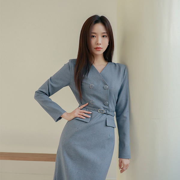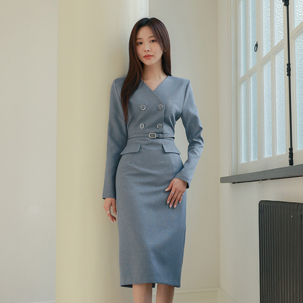 ソフィスティケイト ブイネック ダブル ボタン ワンピース (ベルトSET)