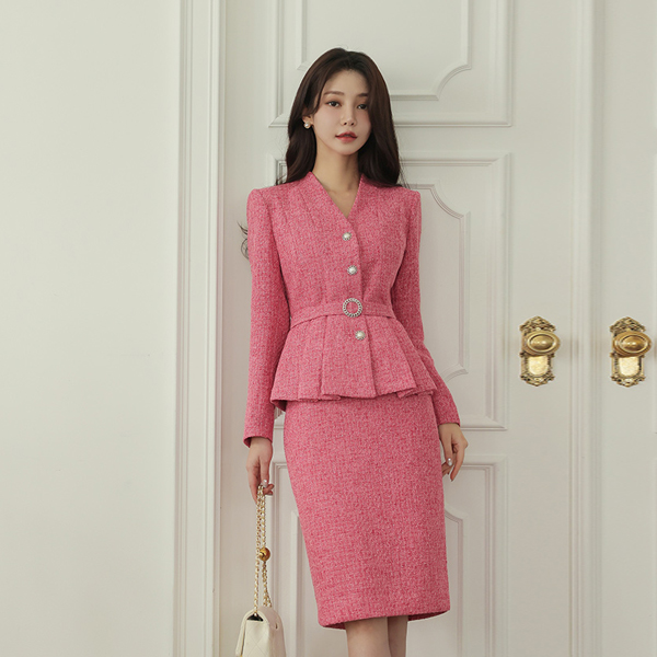 Silver ツイード ベルティード ペプラム ジャケット(spring)