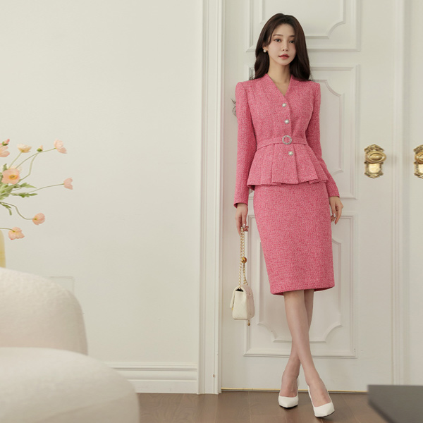Silver ツイード ベルティード ペプラム ジャケット(spring)