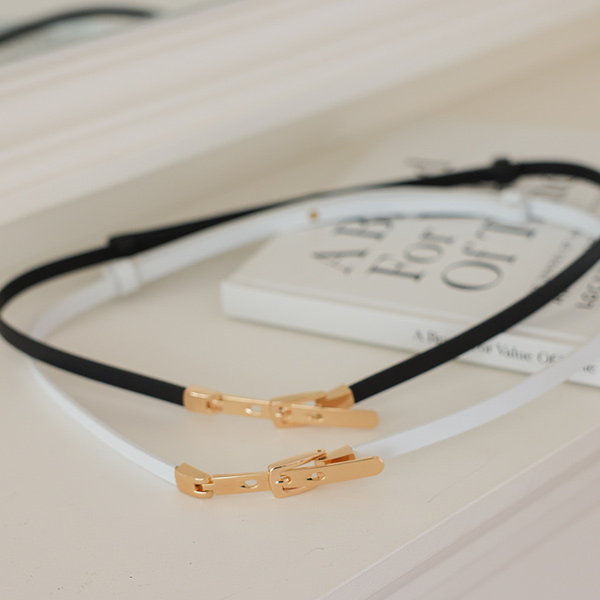 カーフスキン メタル バックル スリム ベルト