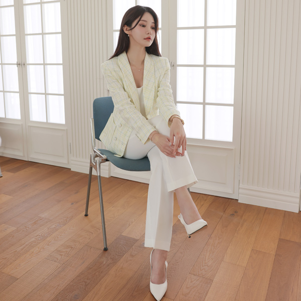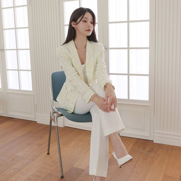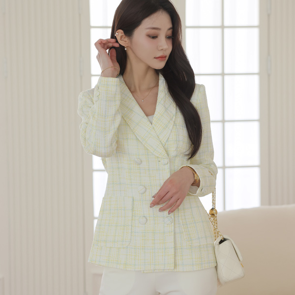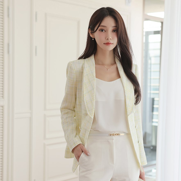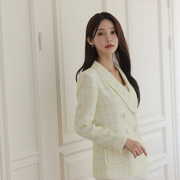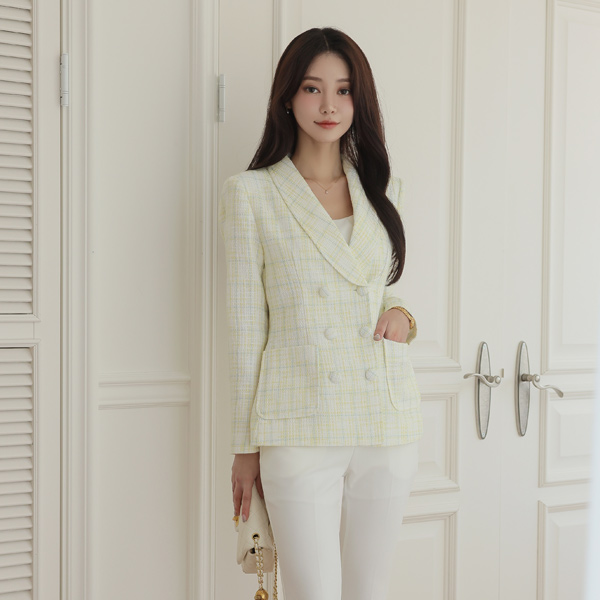 クラシック ショールカラー ダブル ボタン ツイード ジャケット
